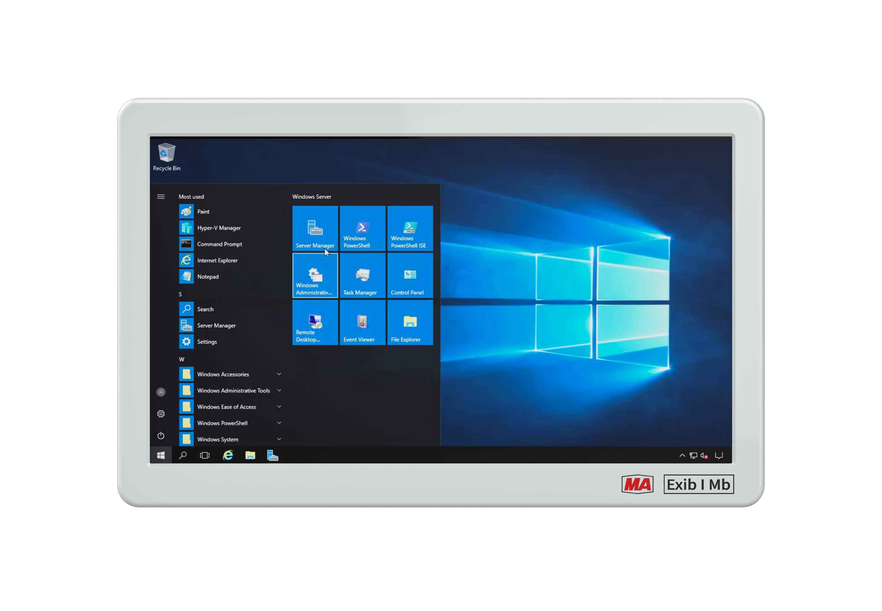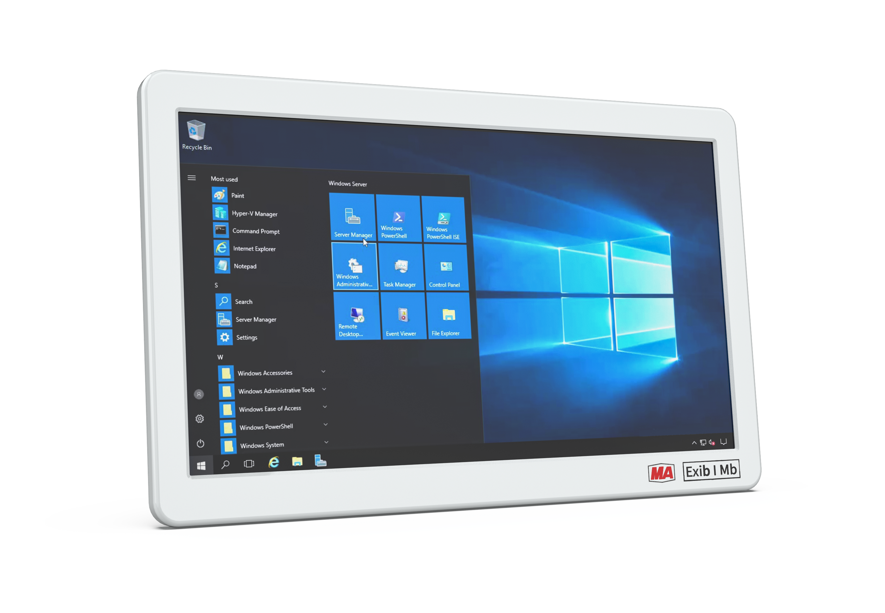 23.8寸超大尺寸1080P本安显示屏并覆盖4mm厚钢化玻璃,保证产品具有超大尺寸屏幕的同时,保持高度安全性和可靠性