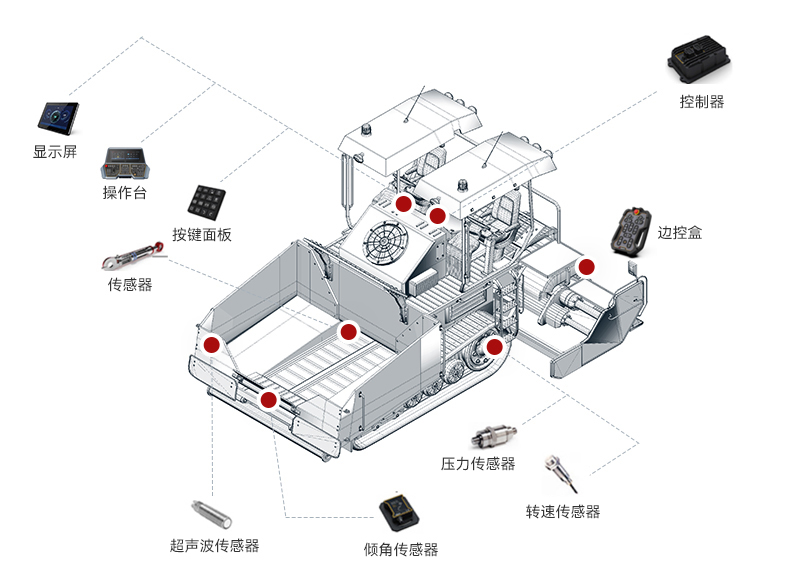 今年会智能摊铺机解决方案整合了感知技术、自动控制系统和数据分析算法,实现了摊铺机高度智能化操作。通过实时获取路面信息和实时调整施工参数,使摊铺机操作更加精准、高效和可靠。